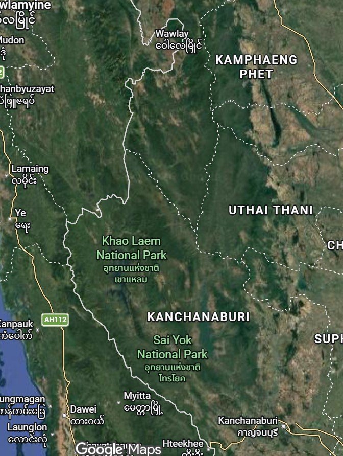 Situated in western Thailand, the Western Forest Complex stretches across the provinces of Kanchanaburi, Tak, Uthai Thani, Suphanburi, and Kamphaeng Phet, hugging the Myanmar border along the Tenasserim Range. This strategic location links Thai forests with Myanmar’s intact wilderness areas, allowing genetic exchange and large‑scale species movements. The region’s mountainous topography, river systems, and limestone formations contribute to diverse microhabitats that support everything from hornbills to tapirs. [ecn-thailand.org]